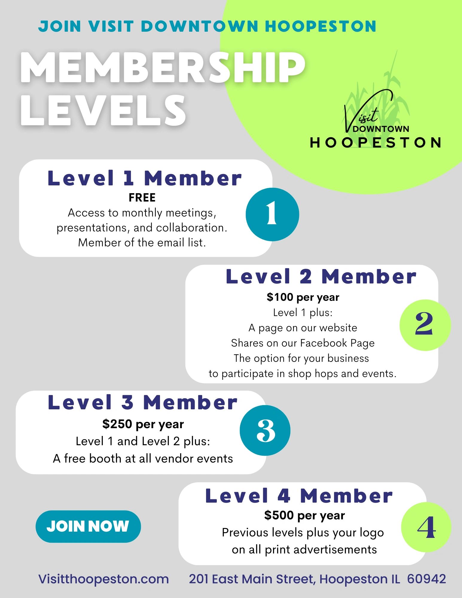 We want to continue to promote Hoopeston and attract new businesses and visitors to the area. We invite you to become a member of our organization at whatever level you feel comfortable with. We encourage you to attend meetings and work with us on bringing more fun events to Hoopeston.